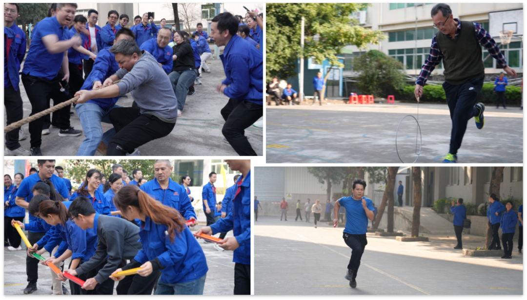 团体项目更是将运动会推向了震撼人心的高潮。在“拔河”中,我们目睹了力量的激烈较量;在“珠行万里”中,我们见证了团队的紧密协作;“滚铁环接力”和“10*100 米迎面接力”则完美展现了速度与默契的巧妙融合;“袋鼠运瓜”和“不倒森林”则是对团队协作能力的极致考验。每一项活动皆是对团队精神的一次深刻诠释与生动演绎。